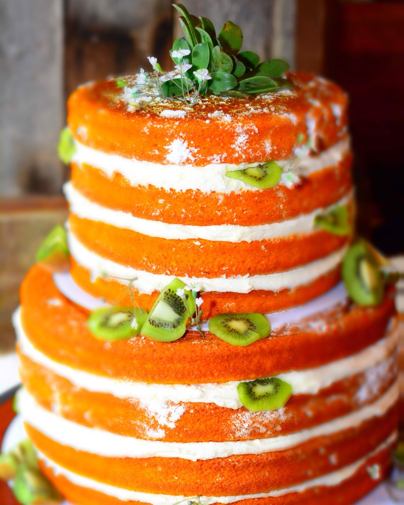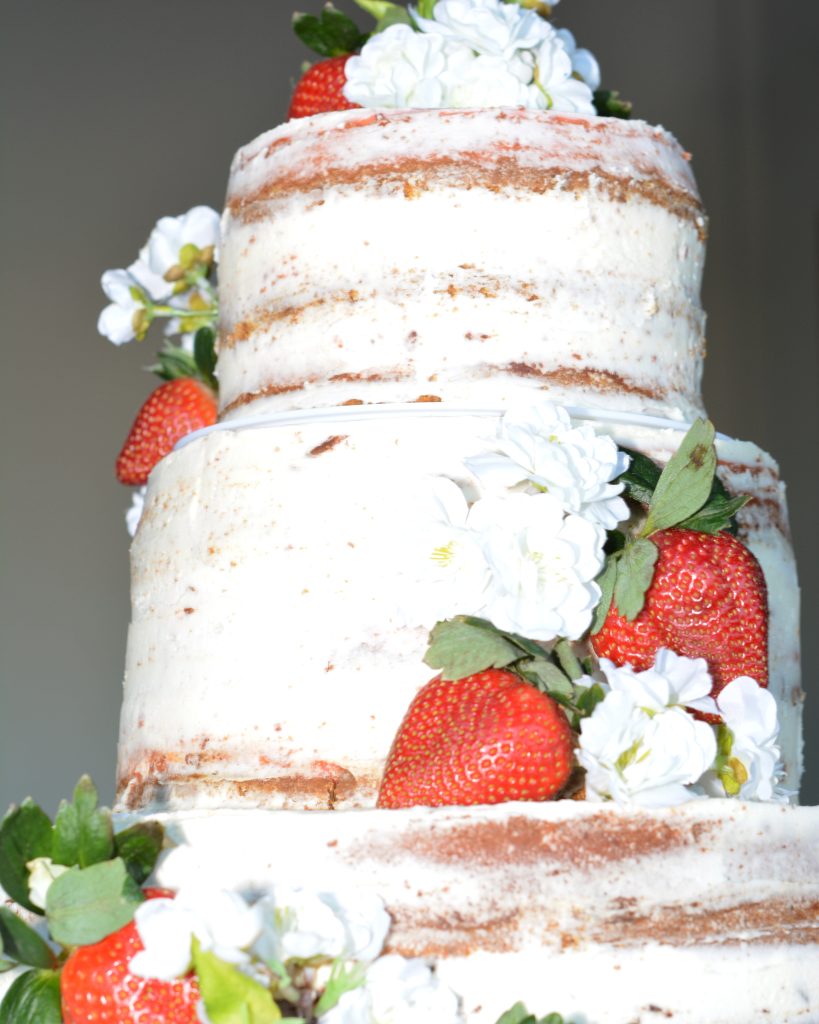 This “Naked” wedding cake flavor is our signature big orange velvet cake. Naked wedding cakes have been quite the trend at First Fruits Kitchen since 2015. Naked wedding cakes have become popular for many reasons, one is that couples are looking for a more cost effective wedding cake. Another reason for the popularity of