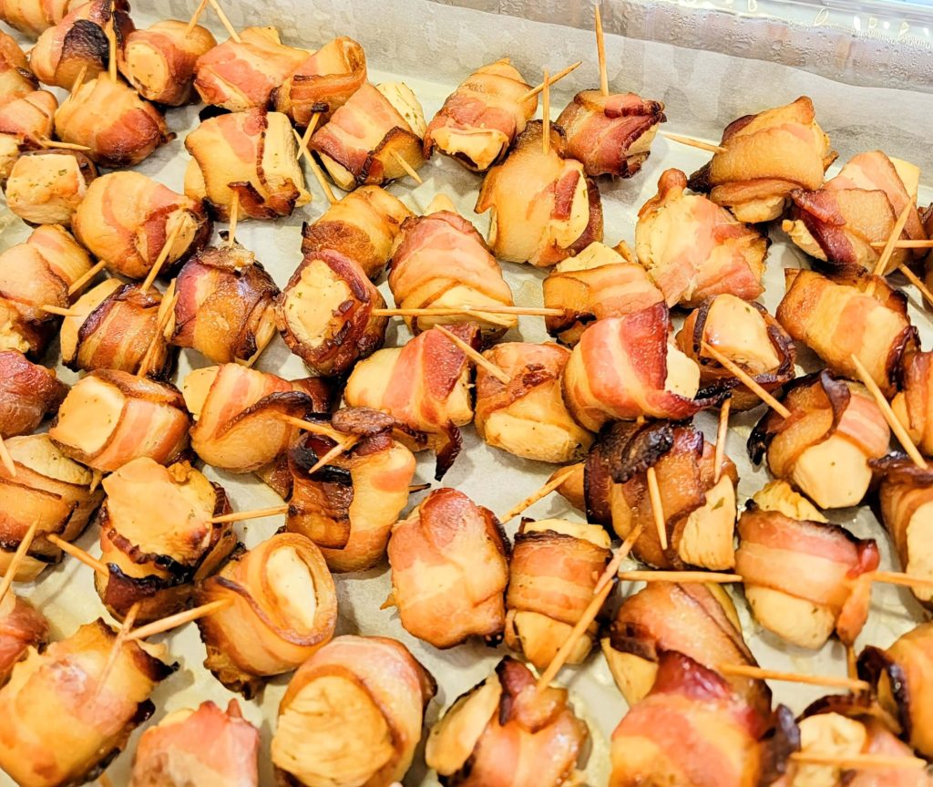Sapphire Hor D Oeuvres Package (substitutions “apples for apples” welcomed) Buffet Menu: *Bacon Wrapped Chicken Bites – tender marinated pieces of chicken breast wrapped in bacon, […]